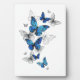 Flying Blue Butterflies morpho and white butterflies on a light abstract background. Morpho. Design with blue butterflies morpho.