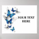 Flying Blue Butterflies morpho and white butterflies on a light abstract background. Morpho. Design with blue butterflies morpho.