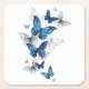 Blue Flying Butterflies Morpho Square Paper Coaster