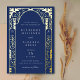A beautiful and formal wedding invitation featuring gold foil elements and monogram initials. Perfect for a classic wedding with a modern and art deco twist. Gold foil details create a bloom of flowers and foliage with a vintage style.