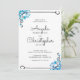 Dainty blue flowers adorn this rustic looking watercolor wedding invitation. Peronalize this design by changing the text, text coor or typeface. You can even add a background colour. The aqua blue pattern on the reverse is optional. Available in other wedding products.