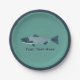 A simple, blue-toned trout or salmon in folk art style on a light blue-green background. Add your own text. For more contrast you may change the background colour. You may also customise by adding a bit of text. And, you may remove the border ring, or change its colour.
