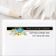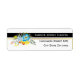 Black and white stripes with blue and yellow flowers wedding label. This lovely design showcases folklore flowers and your names on a black stripe accented with a gold one.