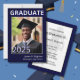 School Colours in Blue diagonal stripes and Photo Graduation Invitation. Add your graduate's photo and party or commencement information. This invitation was created for the football playing grad but any picture can be added (or contact me for help if needed).