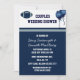 Fun couples wedding shower invitation done in navy blue and white. Graphics of two blue balloons and a dark blue, grey, and white football decorates the top of the invitation, with dark blue text reading Couples Wedding Shower. A navy blue text area has white text ready to personalise for your wedding event. The back has a blue stiletto high heel, blue football, and two blue balloons. Great looking football fans shower invitation the groom and bride will cherish.