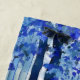 Enjoy this whimsical naive art blue Forest featuring forage with blue flowers under tall trees, butterflies flying around.