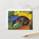 This design features an oil-on-canvas painting by the German Expressionist artist Franz Marc (1880–1916), who was a founding member of Der Blaue Reiter (The Blue Rider), a journal that later became synonymous with the circle of artists collaborating in it. The group also included the artist Paul Klee. Dating from 1911, the painting is one of Marc's earlier animal works featuring bright contrasting primary colours and a reclining fox in blue hues.