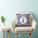 Stylish And Funky Monogram K Letter Dark Royal Navy Blue Circle Frames And Stripes / Lines Minimalistic Cushion / Throw Pillow to add to your home / office / business decor collection. A cool gift / present idea for all who love custom design items, positive vibes, organic theme, minimalism etc. Each side is different. Holidays, happy, baby shower, boy, girl, birthday etc. Change the background colour to suit your own needs, taste and style. Add your name / surname / company / brand name letter to personalise.