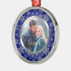 This holiday ornament features your own photo within a pretty frame of silver glitter snowflakes on a royal blue background. The snowflake pattern frame has an inside faux chrome lining. An elegant and festive keepsake gift for newlyweds or any couple. *Please note - the image is printed and contains no actual glitter.*