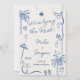 This fun and playful beach wedding invitation brings a splash of Blue French summer charm with its quirky retro-style illustrations. Hand-drawn sunglasses, palm trees, beach balls, and cocktails frame your text in a lighthearted, relaxed layout perfect for a sunny coastal ceremony. Whether you're celebrating barefoot on the sand or sipping rose at a seaside club, this design sets the tone for a laid-back yet stylish event. Update names, date, and venue to make it yours. All the colours are editable.