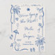 Blue French Beach Seaside Illustration Wedding Invitation