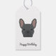 This blue French Bulldog birthday gift tag makes the perfect addition to any frenchie lover’s gift. The design features a cute blue French Bulldog face with a light gray paw and bone patterned background. The text color and font style can be changed by using the customize it further option. Matching items available.