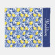 Blue French Country Lemon Pattern Monogram Name Fleece Blanket