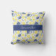 This blue French Country lemon pattern throw pillow features watercolor lemons and delicate blue botanical accents with custom name. This design offers a perfect blend of rustic warmth and sophisticated style.