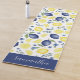 Stylish yoga mat featuring a blue French country lemon pattern with name.