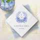 Blue French Floral Crest Wreath Monogram Wedding Napkin