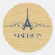 Elegant and chic French Flourish Stickers featuring a faux woodgrain look background and an Eiffel Tower design in dark blue adorned with cascades of stylish swirls. This girly and trendy design is easy to customise with the personalised text of your choosing. Click "Customise It" to find more personalisation options.