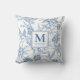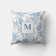 Blue French Toile Monogram Name Cushion