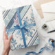 Blue French elegant stripe with floral accents gift wrapping paper. Chic and sweet. Perfect for all your gift wrapping.