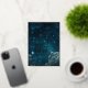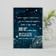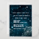 A real silver foil wedding Invitation comes to life with these blue galaxy sky elements. Get ready for a personalised and enchanting celebration of love. Customise it with your wedding venues names, occasion, date and time. The background of this design is something between blue and black with stars, galaxy and clouds. The real foil is changeable in gold, silver and rose gold. The foil has a frame, typography, some stars and are changing to your selecte foil colour.