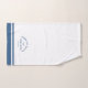 Game Set Match, blue crest, stripe tennis hand towel. Personalise with the year, tennis club / championship / tournament name and location. The perfect addition to your tennis kit or as a gift for a tennis lover. Designed to match our Game Set Match Tennis Collection.