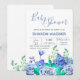 A floral invitation featuring a variety of blue flowers against a white background. Featured for a baby shower, it's suitable for most happy celebrations. (<a href='https://www.freepik.com/free-vector/wedding-invitation-with-blue-flowers_2326398.htm'>Designed by Freepik</a>). <br/><br/>The card is easy to customise with your wording, font and font colour.<br/><br/>Not exactly what you're looking for? All our products can be custom designed to meet your needs at no extra charge.<br/><br/>Simply contact us at askcottonlamb@gmail.com.<br/><br/>Coordinating products available: Just ask us!