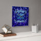 Ornate blue vines and leaves on a dark purple background design.