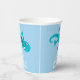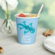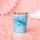 Blue Gecko Lizard Drawing Kids Birthday Paper Cups. Gecko birthday paper cups for kids. A cute blue gecko on a blue background. Custom paper cups with a Happy Birthday text and a child`s name - add your name and text. Great for a boy or girl`s birthday party.