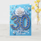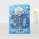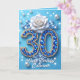 Blue Gemstones and Pearls White Rose 30th Birthday Card