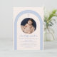 Blue Gender Neutral Boho Arch Cross Photo Baptism Invitation