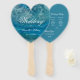 Blue Geode Heart White Calligraphy Wedding Program Hand Fan