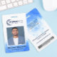 Modern photo ID badge with blue geometric pattern and barcode. Features space for employee name, title, company logo, ID number, expiration date, and return instructions. A clean and professional solution for office, tech, or business identification. Easily customised for corporate or remote teams.