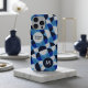 Blue Geometric Mosaic Bauhaus Monogram Custom Name iPhone Case
