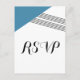 Modern and trendy Geometric Stripe Wedding RSVP Postcard with a blue triangle and thinly striped accent. This simple yet elegant response postcard is set up to be easily customised with your wedding information. Find more customisation options by clicking Customise It.