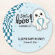 Blue Ghost Little Boo is almost due Baby Shower Round Paper Coaster