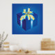 Blue Gift Box with Yellow and Aqua Ribbon Poster