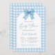 Blue Gingham and Bow Baby Shower Boy Invitation