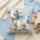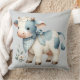 Blue Gingham Baby Cow Pastel Farm Aesthetic Cushion