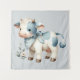 Blue Gingham Baby Cow Pastel Farm Aesthetic Tapestry