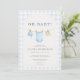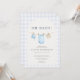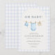 Classic blue gingham baby shower invitation designed with a sweet, timeless style perfect for celebrating a new arrival. Ideal for baby boy showers, baby sprinkles, and traditional gatherings with a soft and charming look. Editable text. Clean print-ready layout.