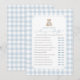Invite friends and family to participate in a game of 'Mommy or Daddy' with this elegant blue gingham teddy bear baby shower game card.