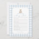 Invite friends and family to participate in a game of 'Who Knows Mommy Best' with this elegant blue gingham teddy bear baby shower game card.