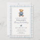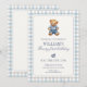 Blue Gingham Beary First Birthday Boy Teddy Bear Invitation