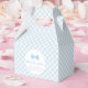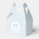 With its light blue classic gingham pattern, this favour box coordinates perfectly with the Lea Delaveris Design gingham baby shower collection. The dots match the adorable bow tie that sits about the custom text. This favour box is perfect for any bow tie boy baby shower and also works well for a baptism.