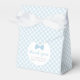 With its light blue classic gingham pattern, this favour box coordinates perfectly with the Lea Delaveris Design gingham baby shower collection. The dots match the adorable bow tie that sits about the custom text. This favour box is perfect for any bow tie boy baby shower and also works well for a baptism.