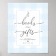 This books and gifts sign features a classic gingham design and a hand-drawn bunny rabbit. The script heading is an image that cannot be edited. The heading image can be resized to fit any poster size. All of the other text is fully editable. For more advanced customisation of this design, simply select the "Customise It" button above.