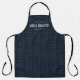 Custom kitchen apron feature classic dark blue and black gingham check with light gray personalized text of grill master and name . Great personalized bbq apron for men. And these father son matching grill aprons make a great gift for Father's Day, Grandparent's Day, birthdays and other special occasions.