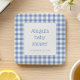 Blue Gingham Check Rustic Boys Baby Shower Square Paper Coaster