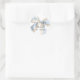 A cute sticker for a baby shower celebrating the arrival of a baby boy or for a gender neutral baby shower, this design has a large pastel blue gingham checks bow tilted to one side. A simple text template allows you to personalize the sticker with the guest of honor's name. Stickers are available in 2 sizes: shown here in the smaller 1 1/2 inch diameter size, they are also available in a 3-inch diameter size.