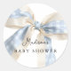 Blue Gingham Checks Cute Bow Baby Shower Classic Round Sticker